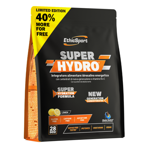 EthicSport SuperHydro® ir pulverveida uztura bagātinātājs ar ogļhidrātiem, elektrolītiem un vitamīniem, kas paredzēts šķidruma un enerģijas uzņemšanai fiziskas slodzes laikā.